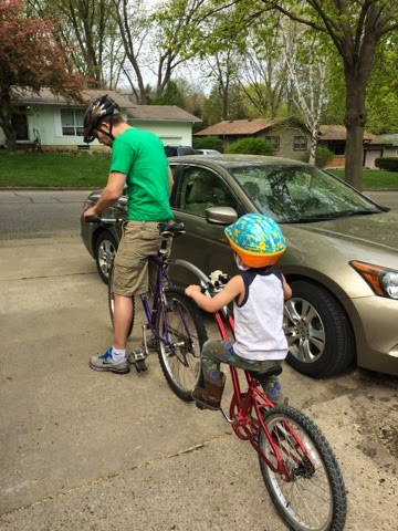 And I have to declare that Craigslist is great. I listed a Crate & Barrel rug on Friday and sold it a day later for $200. And then later that same day we drove out to someone's house and bought a tagalong bike for Sonny D. It connects to the adult bike and rides along behind like a tandem bike. The kid can pedal if they want or just hang on and look around. They went out for their first ride to try it out and I thought they would go around the block and come right back but they were gone for over an hour. Money well spent!